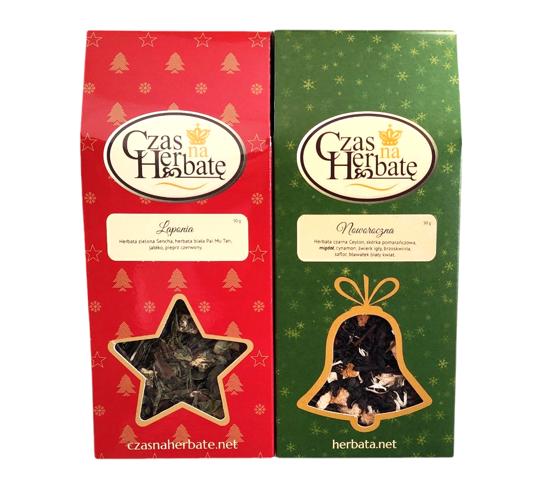 Zestaw zawiera herbatę Noworoczną 50g, herbatę Laponię 50g